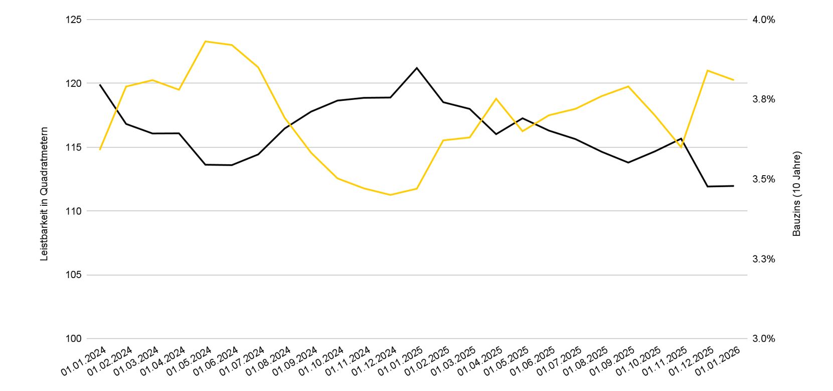 Parallel dazu hat sich die Leistbarkeit von Wohneigentum 2025 deutlich verschlechtert. Steigende Bauzinsen von zuletzt rund 3,8 Prozent und höhere Preise führten zu einem Rückgang der Kaufkraft um 7,6 Prozent. Dennoch wuchs das Kreditvolumen weiter, was auf eine Anpassung der Käufer an das höhere Zinsniveau hindeutet. Für 2026 wird eine Fortsetzung der Erholung erwartet, allerdings bei zunehmender Belastung durch begrenzte Leistbarkeit und konjunkturelle Risiken.